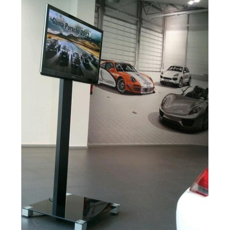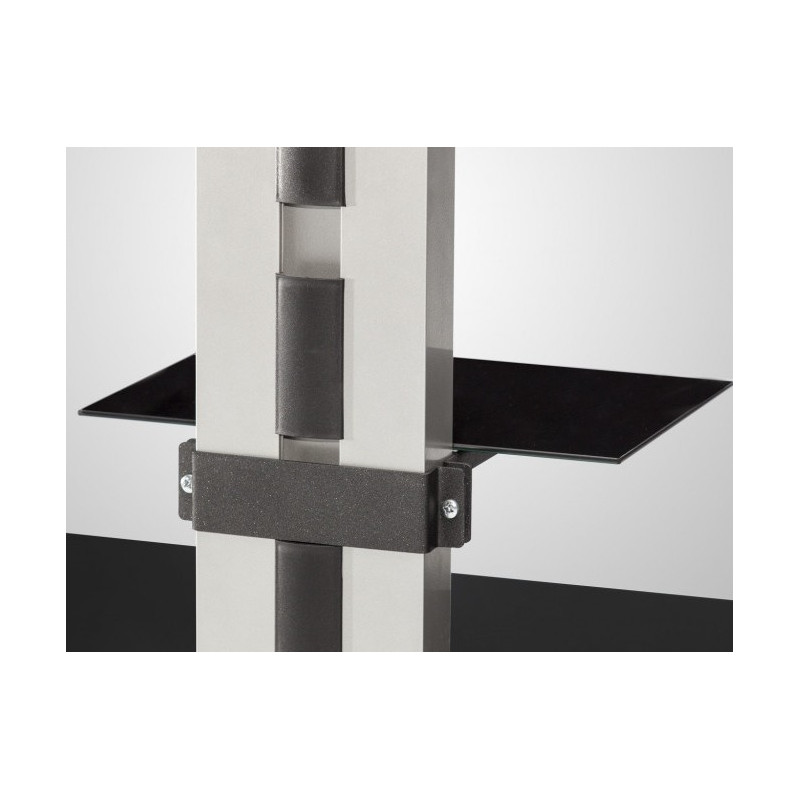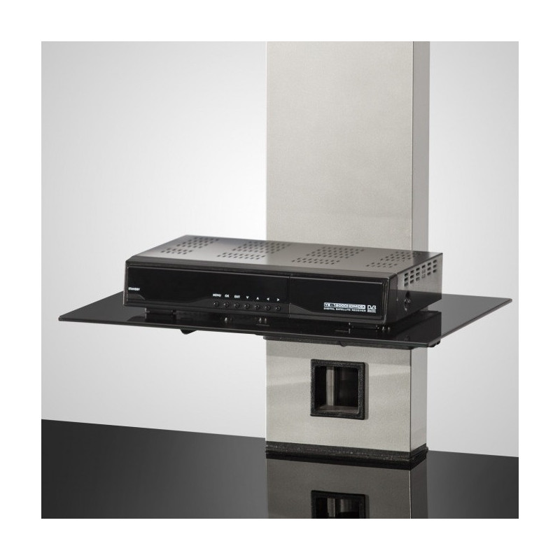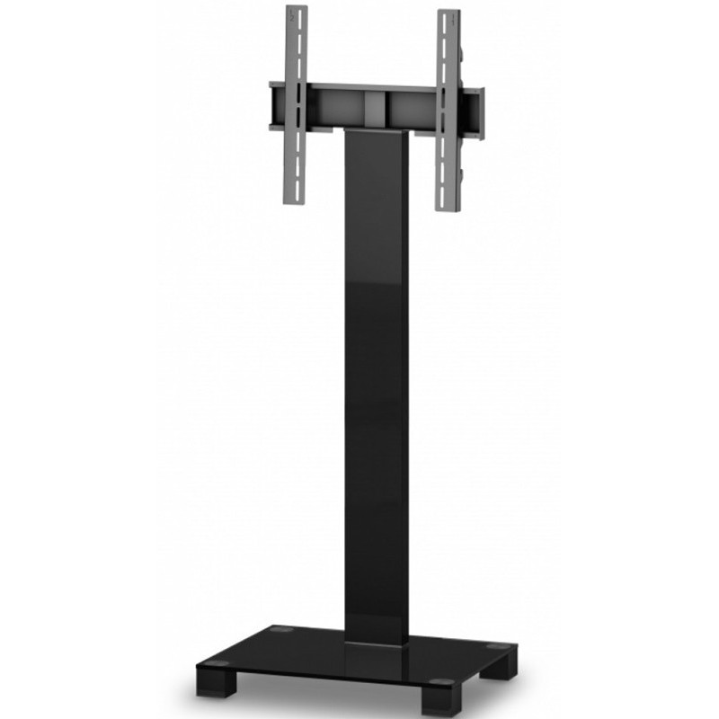 Sonorous PR2562 NN Soporte de pie para TV, con estante regulable en altura | Base de vidrio negro y chasis de aluminio de color negro brillante liso | Alto del soporte 150 cms.