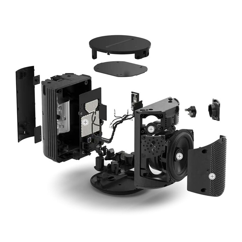 MICRÓFONOS -Una matriz de micrófonos de largo alcance se encarga de formar haces avanzados y evitar el eco multicanal para que el control por voz y el ajuste con Trueplay se activen de forma rápida y precisa. Se desactiva con el interruptor del micrófono.