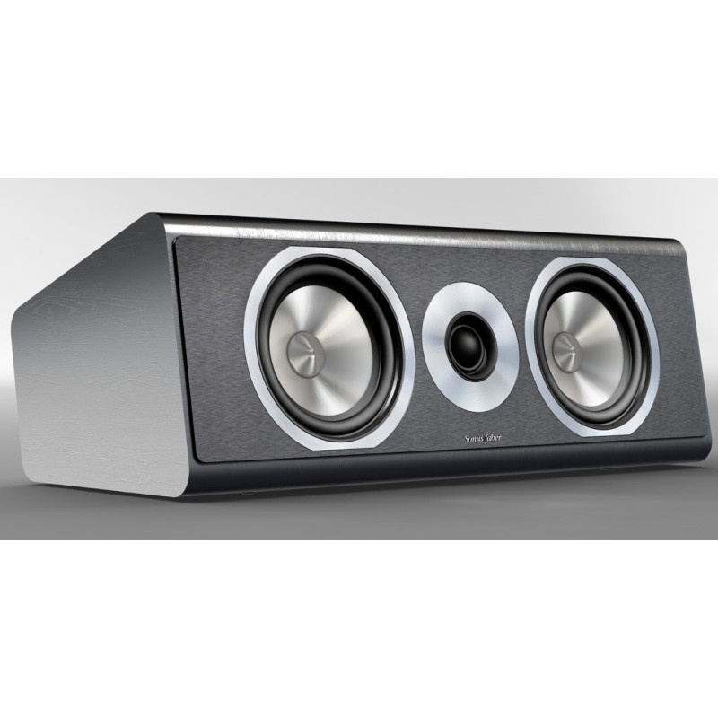 Fundamental en todo sistema de Cine en Casa digno de tal nombre, la caja acústica central es la encargada de reproducir no sólo los críticos diálogos, sino también una parte importante de los efectos de ambiente frontales e incluso de la banda sonora. En consecuencia, el uso de una caja acústica perteneciente a la misma marca y la misma gama que las cajas encargadas de reproducir los canales principales tiene una relevancia máxima. Es por ello que Sonus Faber ha puesto a punto la Principia Center, un estilizado monitor para el canal central concebido para exhibir una nivelación tímbrica perfecta con el resto de modelos de la serie y completar la escena sonora frontal de cualquier sistema de Cine en Casa basado en cajas acústicas Principia. Con un recinto de perfil trapezoidal –geometría que al reducir los paralelismos entre paneles minimiza las siempre perjudiciales resonancias de caja- completamente hermético y bellamente terminado, la Principia Center utiliza una estudiada configuración de 2 vías/3 altavoces formada por un tweeter de cúpula textil tratada, de 29 mm de diámetro, y dos “midwoofers” con cono de polipropileno, de 150 mm de diámetro, que funcionan en modo activo/pasivo con el fin de preservar la respuesta en graves independientemente de cual sea la ubicación elegida. Al igual que en el resto de modelos de la gama Principia, la dotación de altavoces de la Principia Center es gestionada por un filtro divisor de frecuencias con componentes de alta calidad afinado a oído por los ingenieros de Sonus Faber.