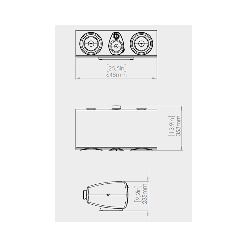 Sonus Faber Sonetto Center G2 altavoz central de 3 vías | Tweeter de neodimio de 1,1", frecuencia extendida DAD™ Arrow Point | Midrange: 1x 4" Camelia, anillo de cortocircuito de cobre | Woofer 2x 6,5", anillo de demodulación de aluminio
