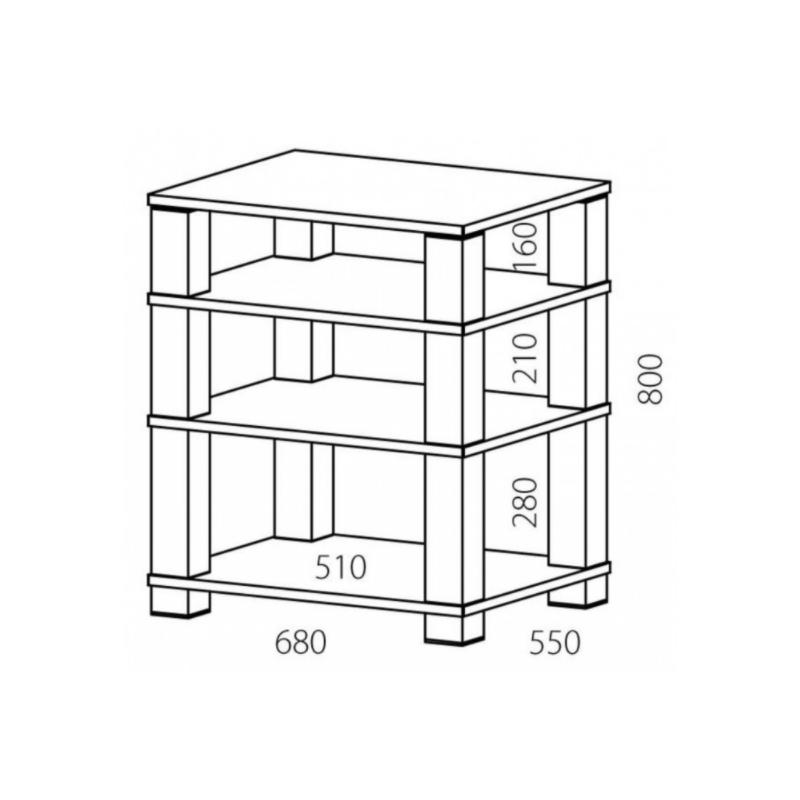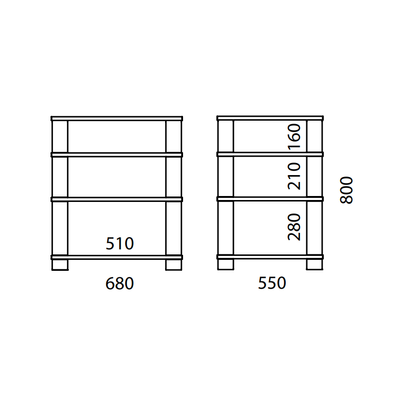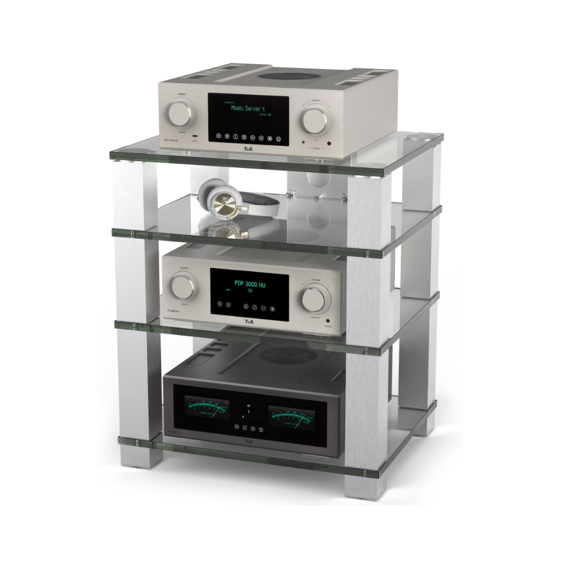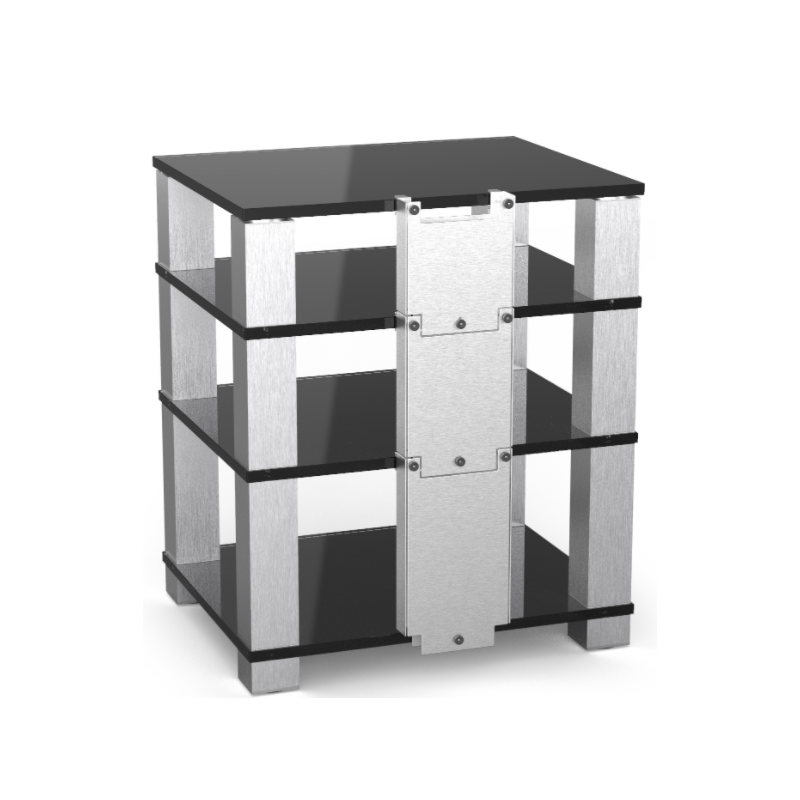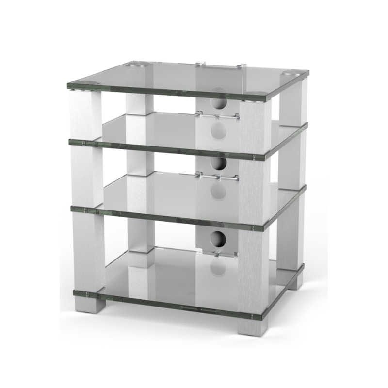High-End HE684 mueble para HIFI | 4 alturas | Columnas de aluminio selladas y pulidas, estantes de vidrio de seguridad de 19mm espesor | Carga máxima de 60 kg por cada estante |
