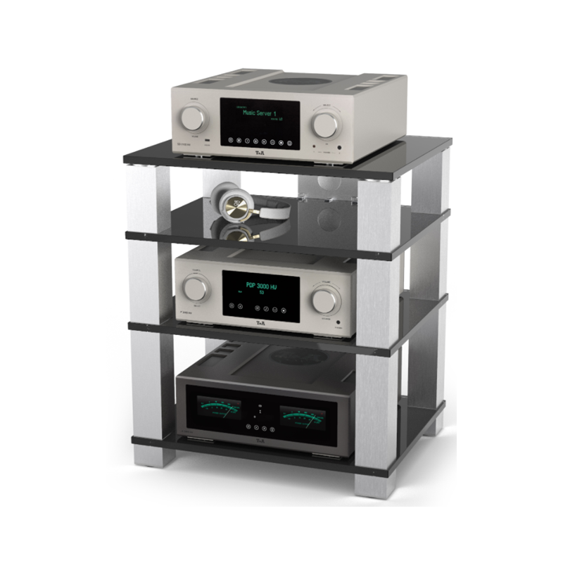 El nombre lo dice todo. Dale a tu equipo de audio de alta calidad un lugar de honor en nuestro estante de HiFi de alta gama, que es una declaración de principios. Este peso pesado cuenta con columnas de aluminio muy robustas y paneles de vidrio extragruesos de 19 mm. Los cables de alimentación se pueden guardar en un conducto especial, disponible opcionalmente. Y está hecho pensando en los audiófilos: se pueden añadir puntas de desacoplo opcionales para reducir la resonancia no deseada.