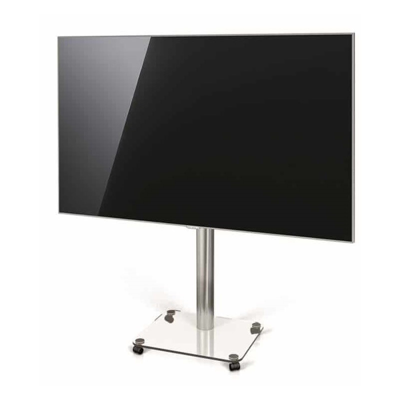 Spectral QX203-KG - Soporte de TV con una base de cristal transparente con ruedas | El soporte de TV puede girar hasta 90° | Estándar VESA: de 100×100 a 400x400