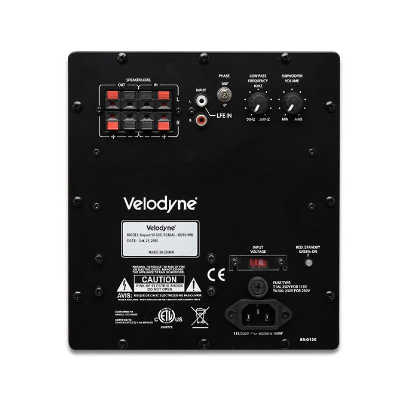 The down-firing port on the Impact-12 gives more bass output with less distortion than similarly priced subwoofer from other companies. With its 275 watts of amplifier focused on the 29 Hz to 140 Hz frequencies, you get a ton of bass for you dollar. You can blend the Impact-12 with your satellite speakers using the adjustable low pass crossover frequency feature. All this great sound is wrapped up in an attractive black ash wood grain colored cabinet with black gloss trim.