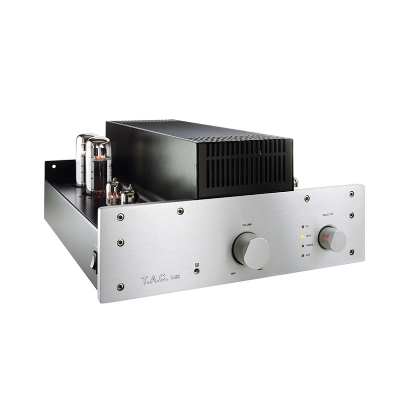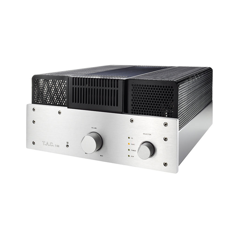Tecnología probada en un diseño moderno, así se presenta el T-22 de T.A.C. Las dos válvulas EL34 por canal funcionan en modo push/pull. Una toma de realimentación en el transformador de salida minimiza la distorsión y representa un circuito ultralineal. Todos los componentes utilizados para determinar el sonido se miden antes de la instalación. Para acentuar el carácter purista, no se utilizó ningún control de tono.