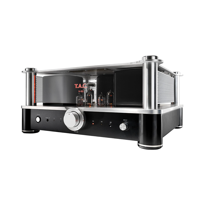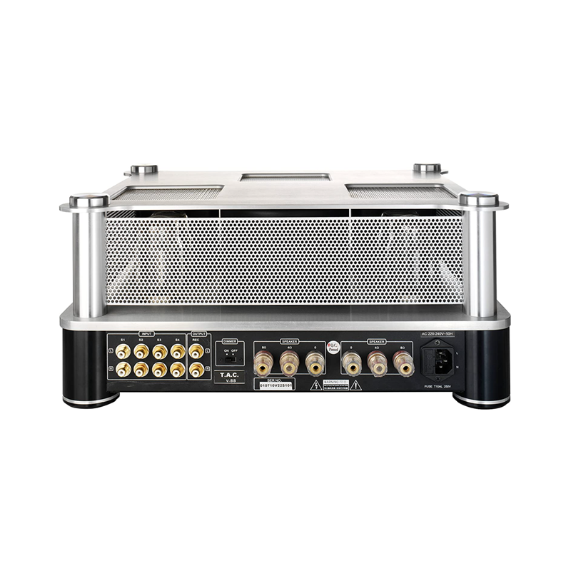 TAC V-88 le ofrece una imagen de sonido cálido que lo inspirará con su alta y precisa resolución. Gracias al control de sesgo automático patentado, el V-88 impresiona en todas las disciplinas. Este sistema de control automático de voltaje de polarización y corriente constante evita la distorsión, el ruido y la interferencia, así como daños a los tubos. Se utilizan cuatro KT88 rusos como tubos de salida para amplificación. Los tubos rusos también hacen su trabajo en la sección de preamplificador, y aquí tocan su buen sonido al máximo.
