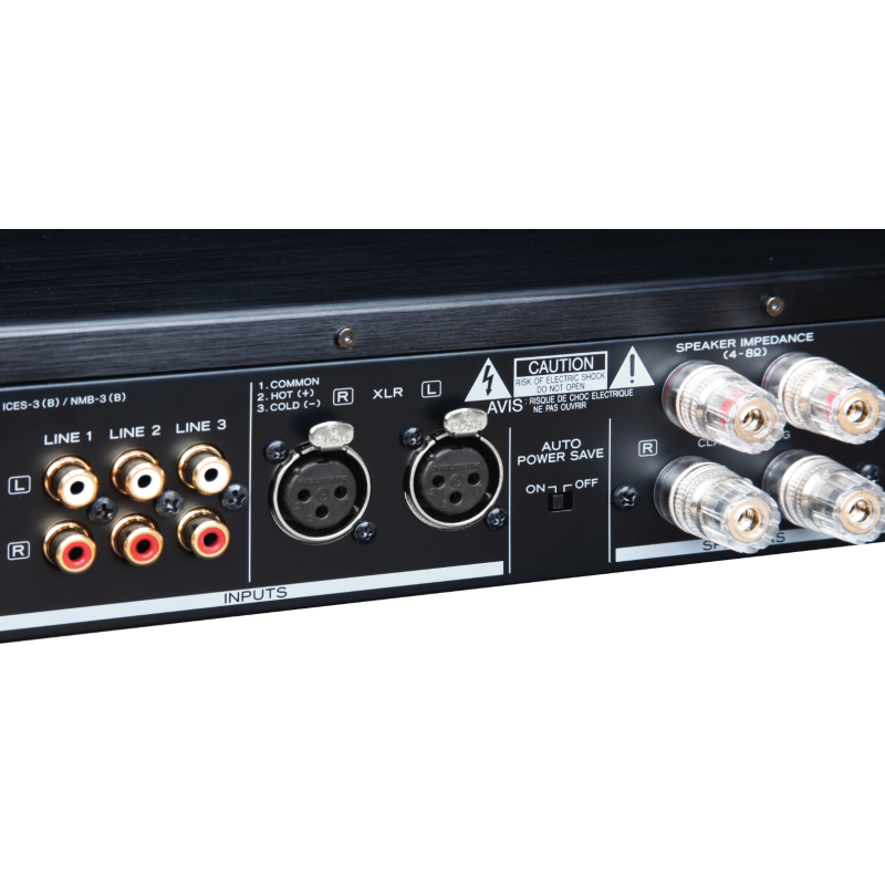 Amplificador integrado con preamplificador de circuitos analógicos totalmente balanceados, amplificador digital de alta potencia y entradas balanceadas XLR.