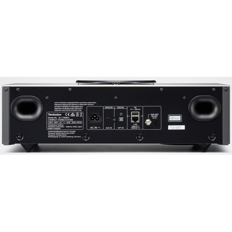 El SC-C70MK2 está equipado con una unidad woofer de 8cm y una tweeter de cúpula de 2cm. El nuevo tweeter se combina con una lente acústica cuya forma ha sido optimizada para ofrecer un sonido más expansivo. Al igual que su predecesor, esta nueva versión cuenta con un sistema de altavoces de 2.1 canales que incluye un subwoofer de 12cm. El sistema de altavoces está impulsado por tres unidades de JENO Engine, el amplificador digital original de Technics, que permite reproducir un sonido impresionante desde una unidad muy compacta.