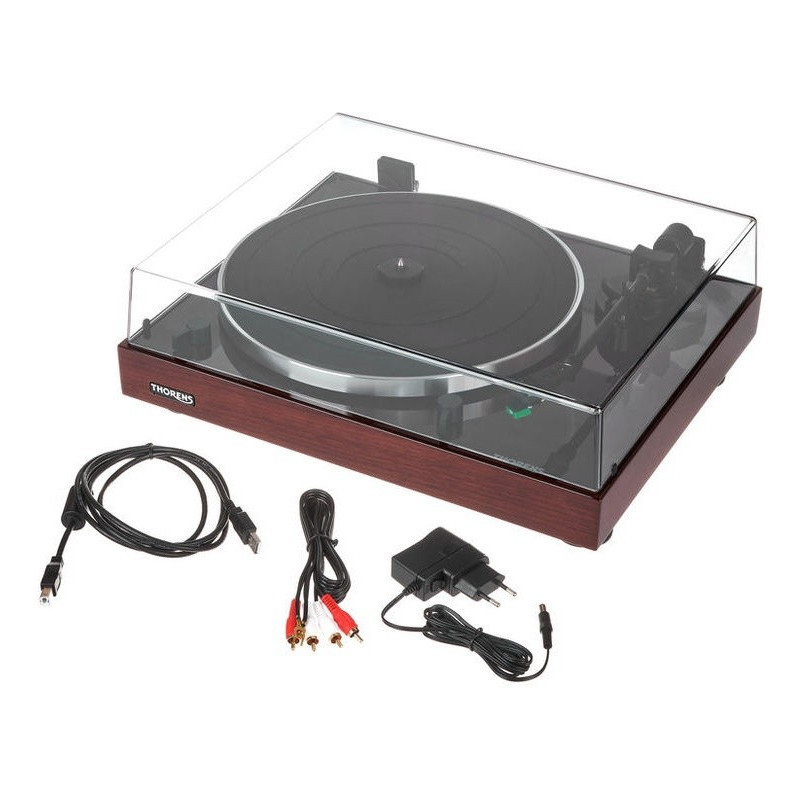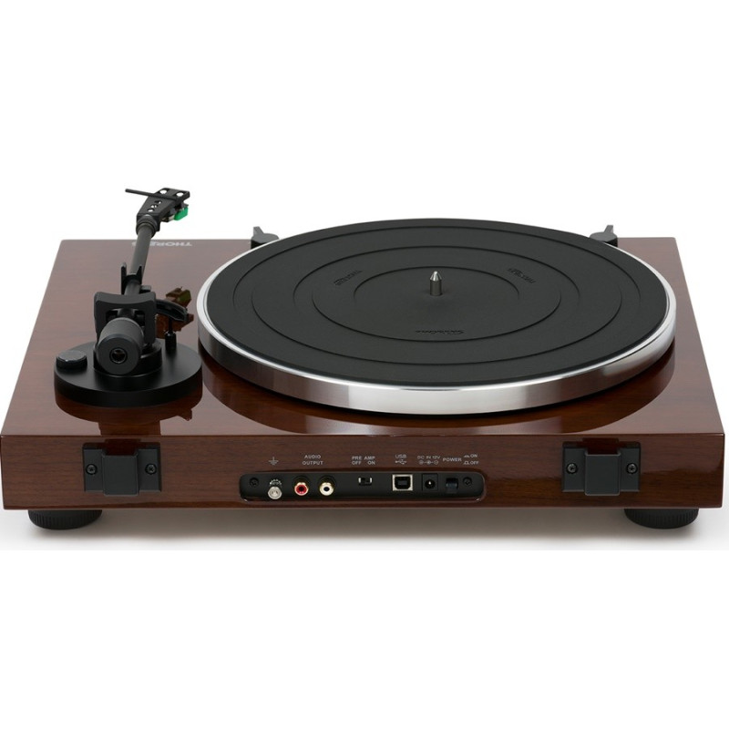 Thorens TD 202 tocadiscos plug and play de contrucción robusta | Accionamiento por correa de marcha suave y plato de aluminio con alfombrilla de goma | Brazo Thorens TP71 | Portacápsulas desmontable con cápsula AT 95E | PREVIO PHONO INTEGRADO | Salida USB para digitalizar vinilos