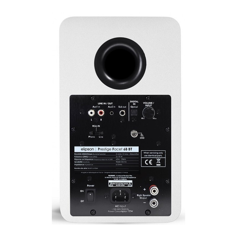 También equipado con varias entradas analógicas, incluyendo una entrada phono, y con una entrada óptica digital, el Prestige Facet 6B BT es muy versátil y puede conectarse a todos sus dispositivos personales de audio (giradiscos, reproductor de CD, TV, reproductor de Blu-ray...).