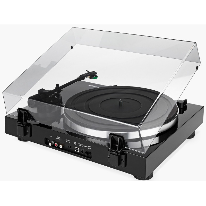 La etapa de phono integrada incluye un convertidor analógico/digital adicional con salida USB. De este modo, la grabación reproducida se digitaliza automáticamente y puede grabarse fácilmente en un ordenador utilizando varios tipos de software de grabación que se pueden descargar desde el archivo