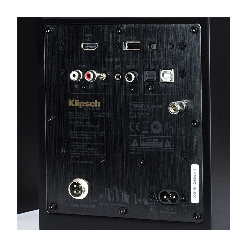 Klipsch The Fives v2 Altavoces Auto-Amplificados con Bluetooth | Mando a Distancia | Entradas: HDMI ARC-CEC, PHONO para tocadiscos, Minijack 3.5mm, USB para ordenador, Digital óptico | Incluye Mando a Distancia, Cable de altavoz de 4m, Cable USB de 1.5m y Cable HDMI de 1.5m