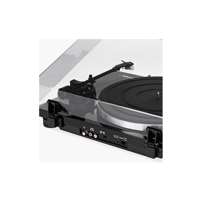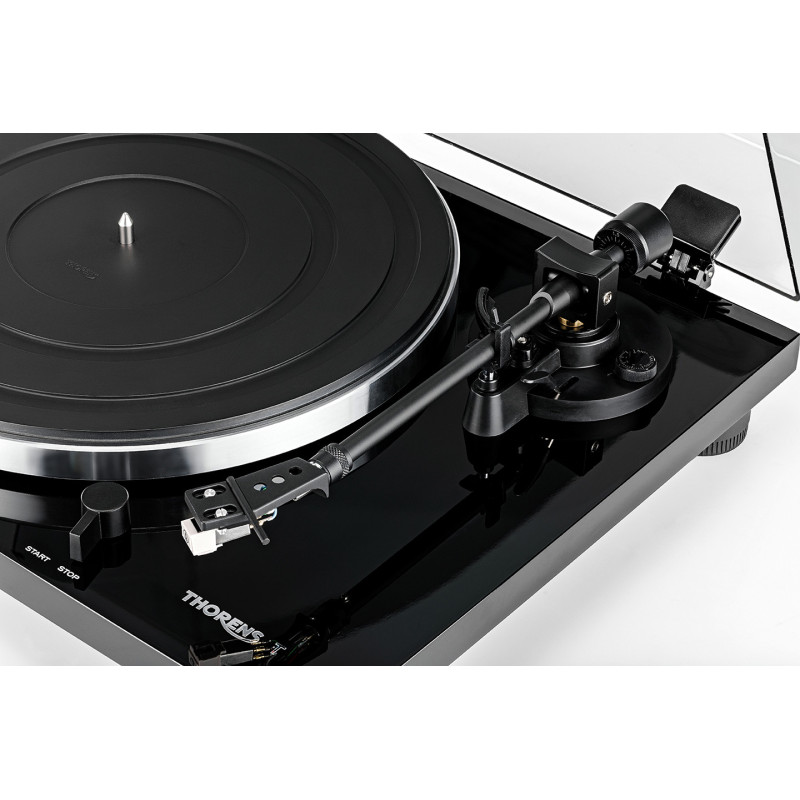 TD 201, tocadiscos plug and play robusto | Accionamiento por correa de marcha suave y plato de aluminio con alfombrilla de goma | Brazo Thorens TP71, portacápsulas desmontable, con cápsula AT 3600 preconfigurada