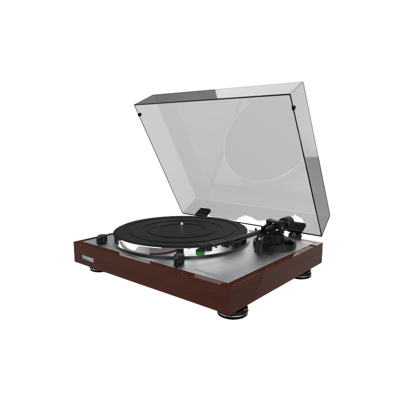 Las Thorens TD 402 DD vienen como una solución lista para usar. Tiene un motor de accionamiento directo muy silencioso e innovador en combinación con un preamplificador phono integrado y una función de arranque y parada automática.