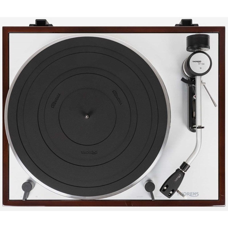 El nuevo brazo TP 150 también se utiliza en el nuevo modelo Thorens TD 1500 y es similar al TP 124 utilizado en el nuevo TD 124 DD. Tiene una masa efectiva de 14 gramos, es ajustable en altura y acimut y está equipado con un conector SME estándar, por lo que se pueden cambiar fácilmente los cascos o montar otros cartuchos.