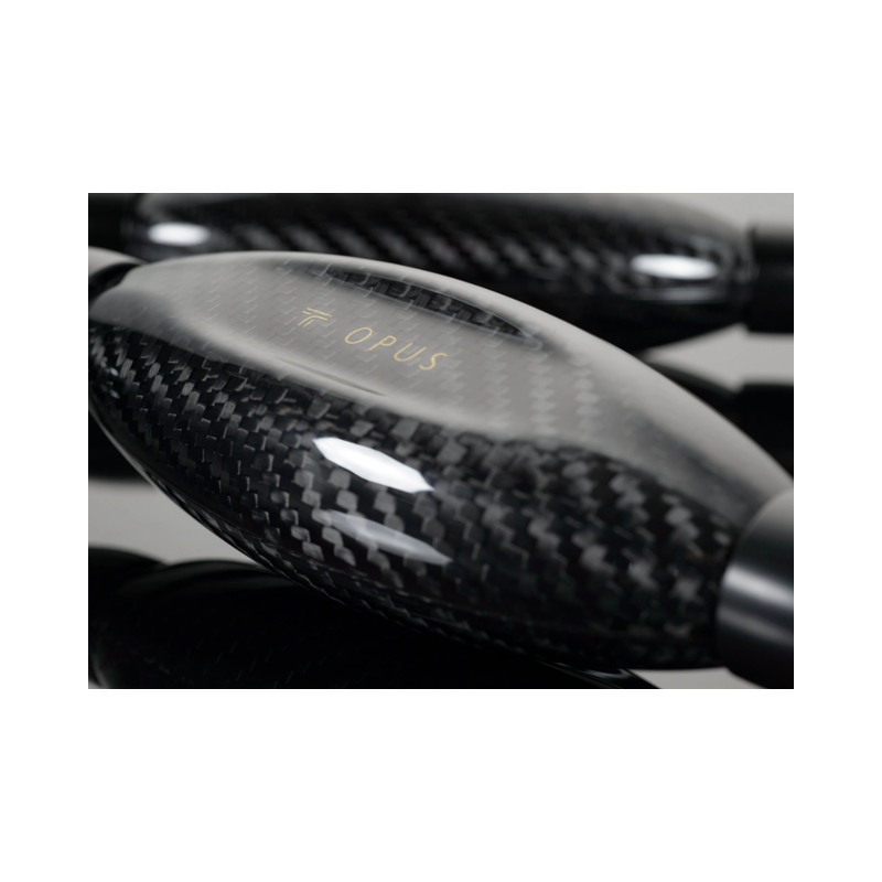 El control de la vibración y la resonancia y el aislamiento también alcanzan nuevas cotas con OPUS. Cada interconexión equilibrada OPUS cuenta con 2 carcasas de módulo por canal para aislar aún más las redes dobles totalmente equilibradas de forma diferencial. El aislamiento adicional reduce el ruido y amortigua más eficazmente cualquier oportunidad de que las resonancias afecten al rendimiento. Los componentes que componen cada red están revestidos de epoxi eléctricamente neutro y rodeados por una carcasa de red de fibra de carbono que ha sido contorneada específicamente con el fin de reducir las reflexiones de las ondas estacionarias. La fibra de carbono es antimagnética, ligera y rígida. La carcasa de la red, más fina y resistente, proporciona una mayor cavidad para amortiguar la carga de epoxi, y las cualidades no magnéticas de la fibra de carbono permiten la expansión libre y completa de los campos electromagnéticos, liberando así su sistema para revelar la microdinámica y la información musical armónica con mayor precisión.