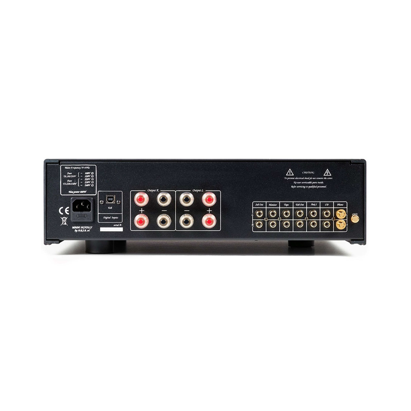 Unico Due | 100 W RMS por canal a 8 Ω | Etapa de entrada: Clase A pura con válvulas 2 x ECC83 en triodo y válvula ECC81 en paralelo | Etapa de salida: Clase a DINÁMICA con BJT, en configuración de doble par "súper simétrica" | Entradas: 2x RCA analógicas, 1x RCA phono MM, 1x Digital USB, 1x RCA cinta | Salida: 1x RCA cinta, 1x RCA subwoofer (variable), 1x RCA DAC (fija)