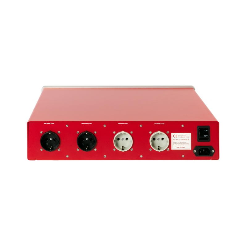 Van den Hul The Black Hole filtro de red | 4 (2 de baja corriente y 2 de alta corriente) tomas de corriente aisladas individualmente | 12 etapas de filtrado internas para suprimir ruidos de frecuencia comprendida entre 1 kHz y más de 1GHz | Potencia total de 1.800 vatios