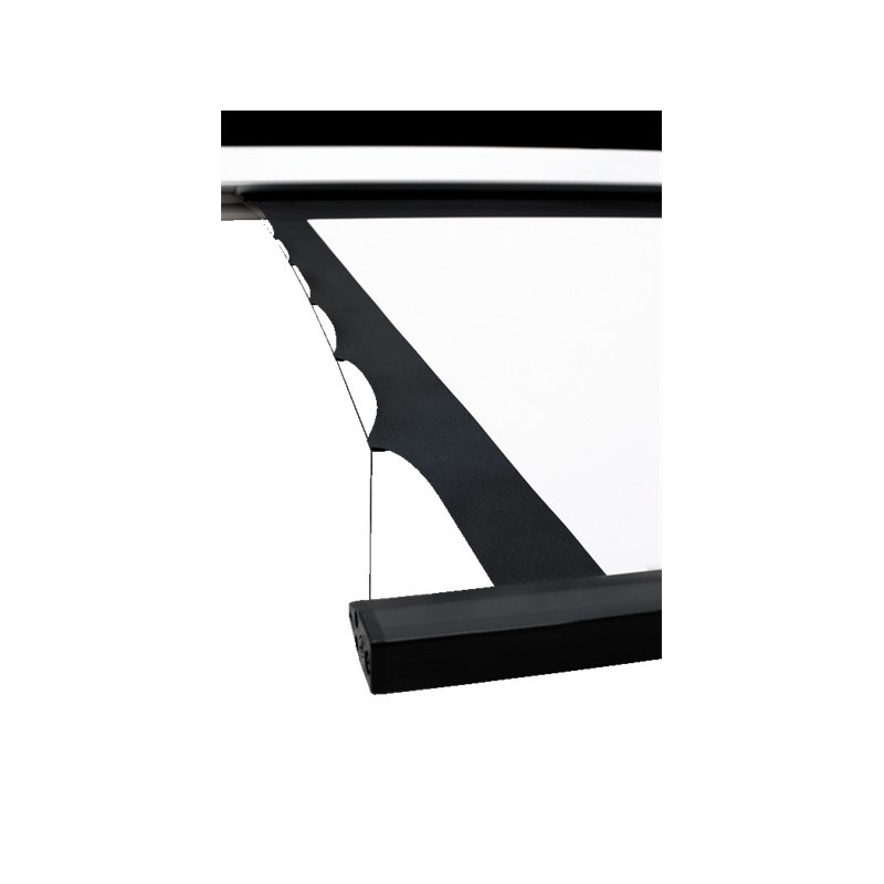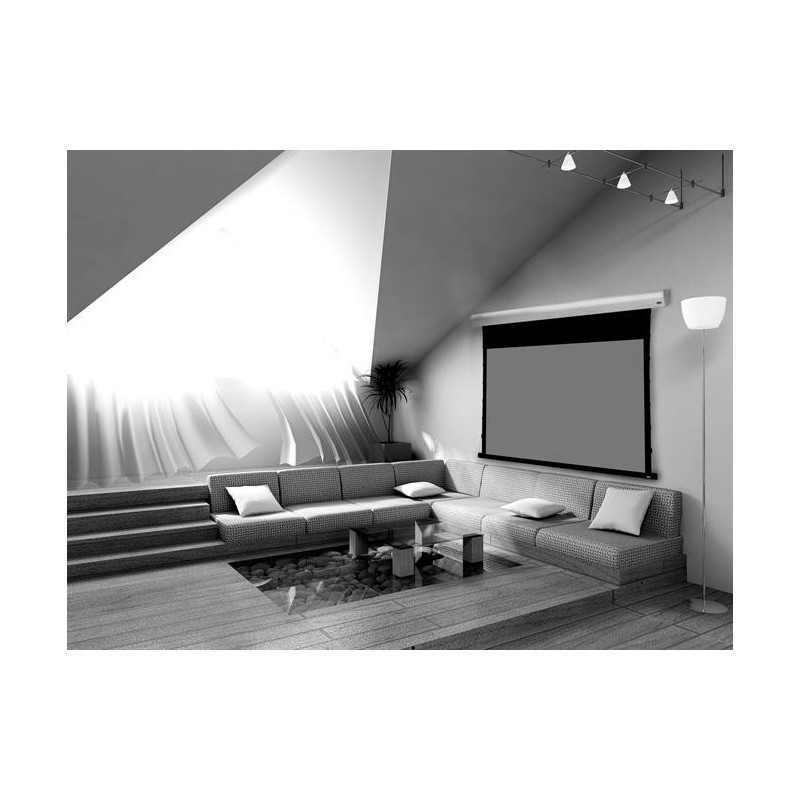 fasteners, and all attachment points are completely invisible. The case is finished in white and the white heavy weight bottom dowel retracts completely inside the case when the screen is not in use. Thanks to the tensioning wires, which are integrated along the screen surfaces vertical edges, a fully flat screen surface can be obtained for many years in use. A perfectly flat screen surface is a requirement when using Short Throw projectors where the wide angled projector lens put higher demands on the quality of the projection screen.