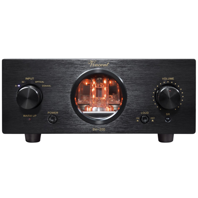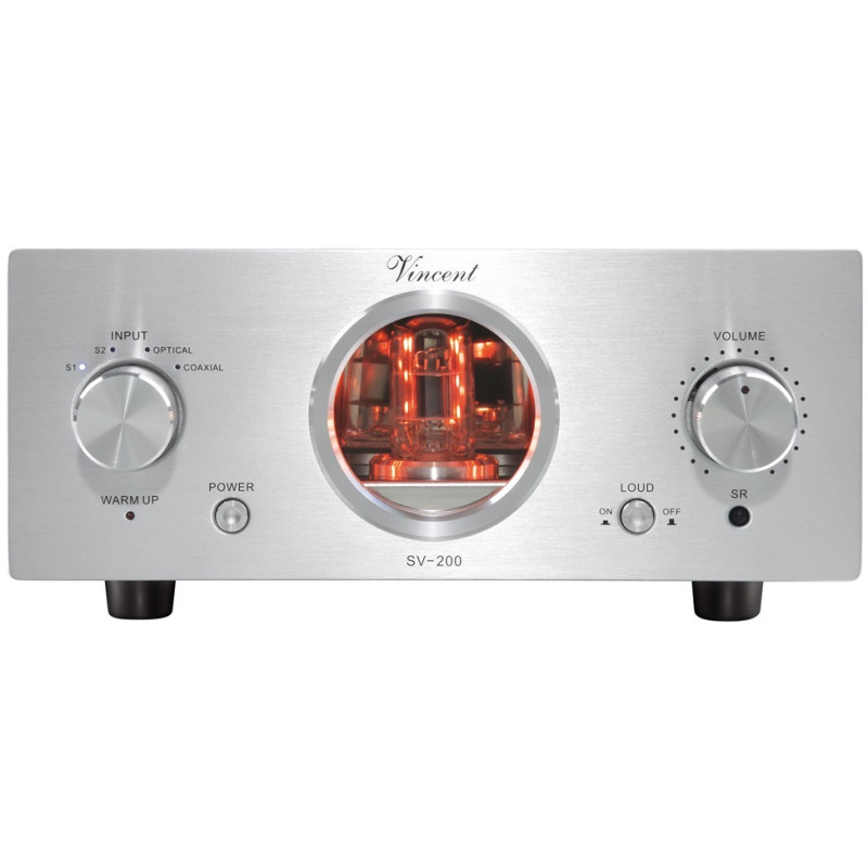 Vincent SV200 amplificador de potencia 25 Watios RMS con salida a válvulas ->híbrido. Entradas analógicas y digitales gracias al DAC que incorpora. Digital óptica y Digital Coaxial.