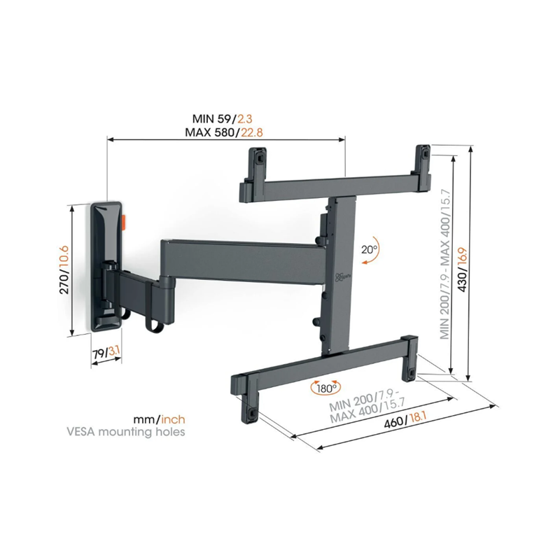 Vogels TVM 3463 OLED soporte TV giratorio | Tamaño min/máx pantalla: 32"-65" | Movimiento suave OneFinger™ | Bloquea y libera fácilmente la inclinación con TiltAnchor™ | Gira hasta 180° | Carga máx: 25 kg | Opcional: TVA 6400 soporte para centro multimedia
