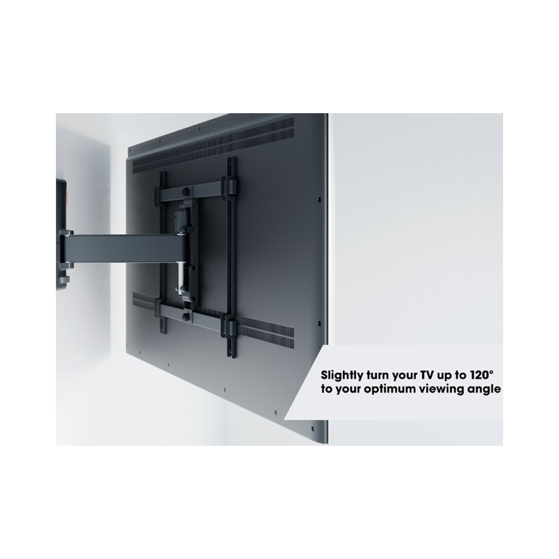 Quieres disfrutar de tu gran TV de pantalla plana sin preocupaciones. Con este elegante soporte de pared para TV COMFORT Full-Motion, podrás hacerlo. El TV se instala con estilo y seguridad en la pared. El soporte de pared está especialmente diseñado para un uso intensivo, pensando en las familias con niños. ¿Quieres ajustar el ángulo de visión perfecto? No hay problema. Gira el TV hasta un ángulo de 120° e inclínalo hasta 20°. El soporte de pared es apto para TV de entre 40 y 77 pulgadas con un peso de hasta 35 kg.