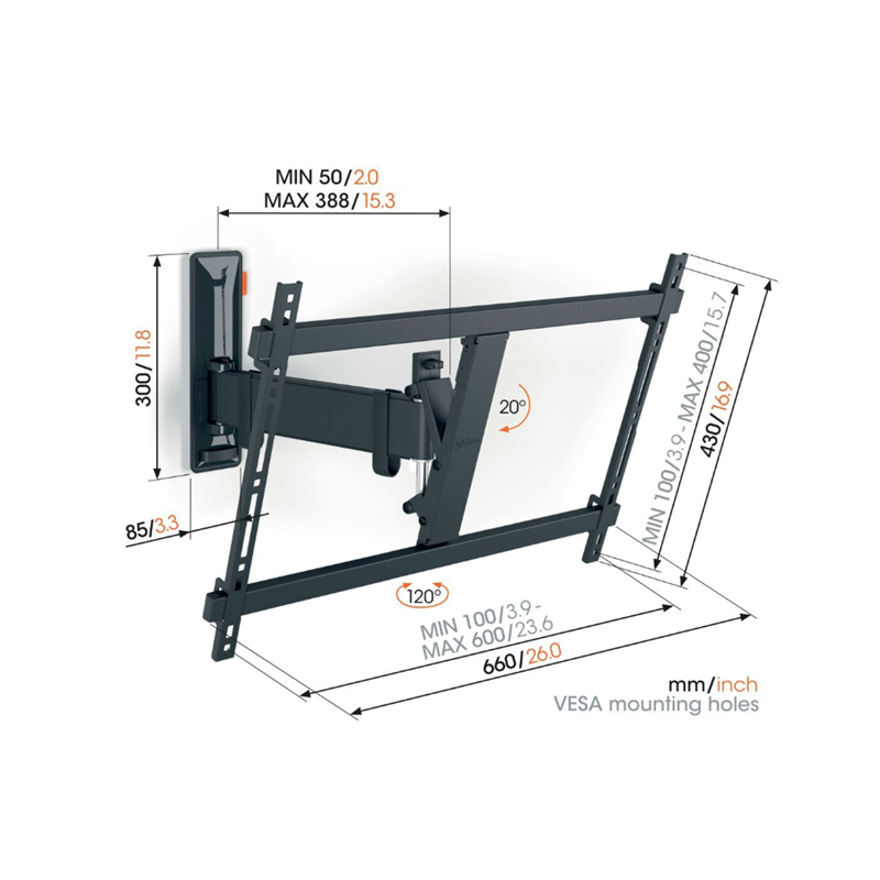 Vogels TVM 3623 soporte TV giratorio | Tamaño min/máx pantalla: 40"-77" | Movimiento suave OneFinger™ | Gira hasta 120° | Carga máx: 35 kg | Opcional: TVA 6400 soporte para centro multimedia
