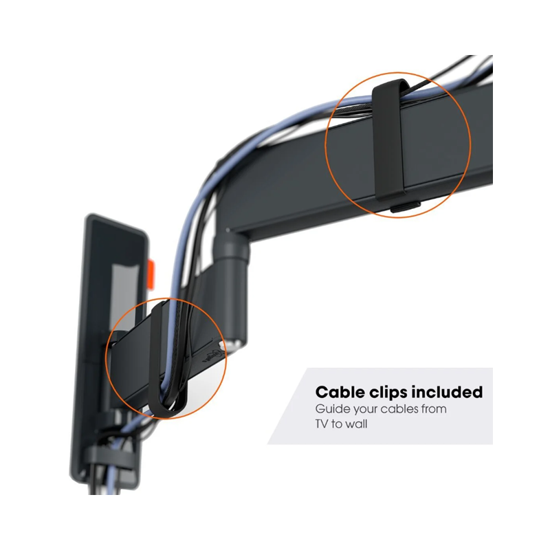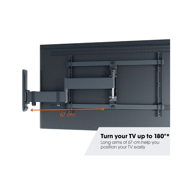 - Gira tu televisor hasta 180° gracias a sus largos brazos de 67 cm