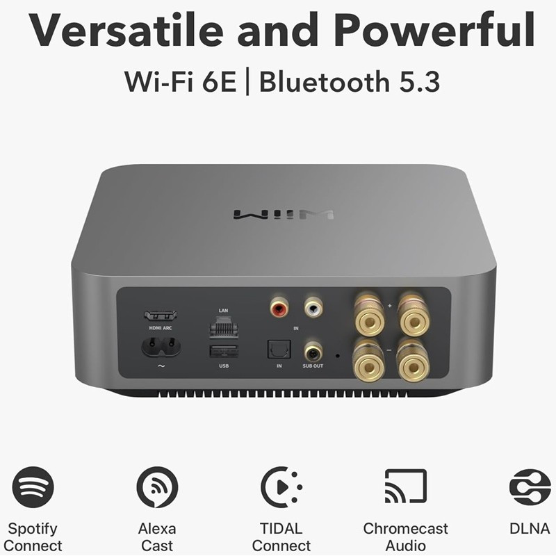 WiiM Amp Pro - Amplificador de 60 Watios con WIFI 6E integrado | DAC SABRE ES9038 Q2M de 32 bits/384 kHz y amplificador TI TPA3255 de clase D. | Bluetooth 5.3 | Spotify Connect, Alexa Cast, Tidal Connect, Amazon Music, Chromecast Audio, DLNA | Entrada digital óptica, HDMI ARC y Analógica 2RCA | Mando a distancia incluido