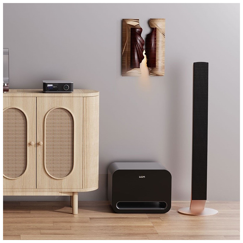 WiiM Sub Pro Subwoofer - PRÓXIMAMENTE - 250 Watios de potencia y woofer de 8 pulgadas | La calibración automática de la corrección de la habitación toma mediciones acústicas precisas y ajusta los graves al tamaño de la habitación, la colocación de los altavoces y la posición de escucha | Puede actuar tanto de manera inalámbrica con amplificadores o streamers WiiM, como por cable a cualquier amplificador con salida de subwoofer.