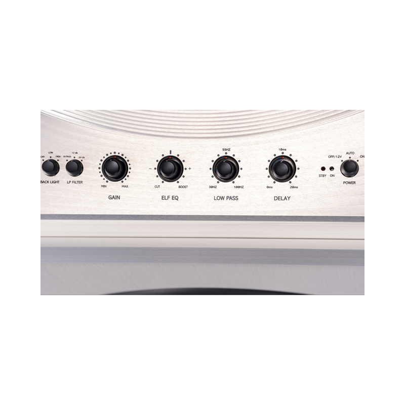 Los controles analógicos frontales se encuentran en una placa bellamente mecanizada que permite ajustar el equilibrio de su Submerge a la perfección. Estas perillas analógicas proporcionan ajuste de ganancia, retardo (fase), ajuste ELF y frecuencia LP. Una vez configurados los controles intuitivos, marque fácilmente su posición con los anillos indicadores personalizados. Puede realizar ajustes y volver a la configuración inicial sin problemas. Estas perillas también brindan una manera rápida de volver a la configuración correcta si se reorganizan accidentalmente.