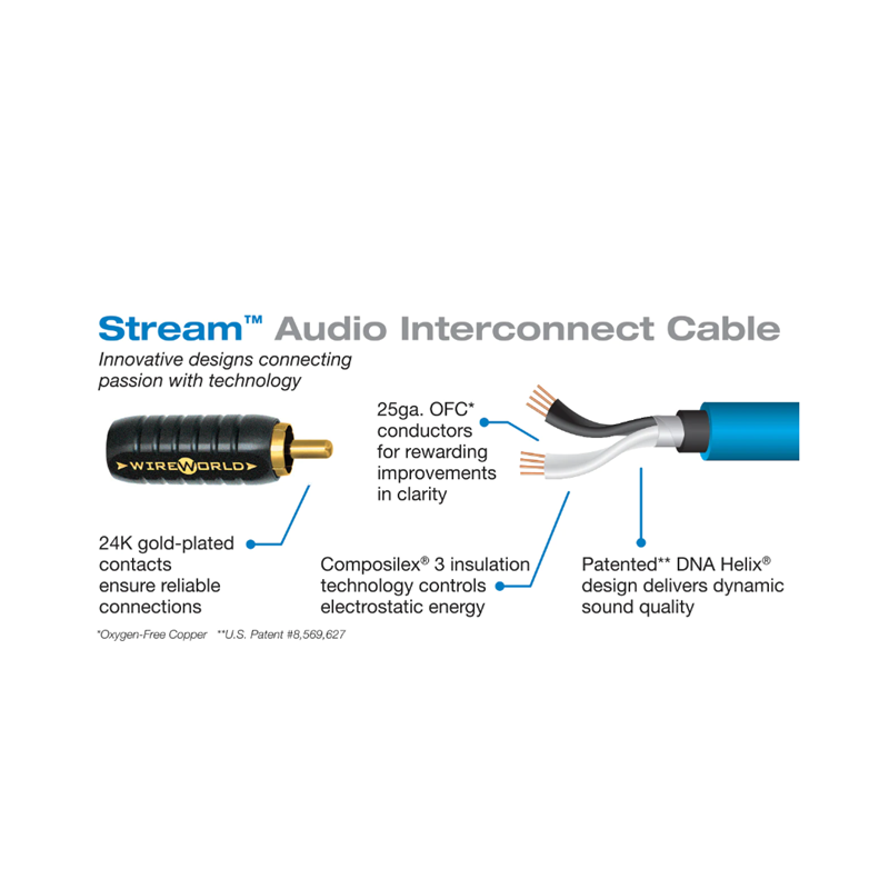 WireWorld Stream STI RCA | Cable de Audio RCA | Conectores: Revestimiento de oro 24K | Conductores: Cobre sin oxígeno