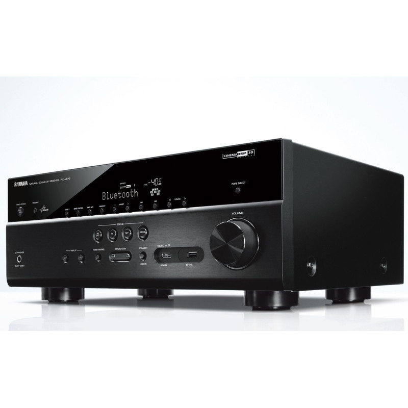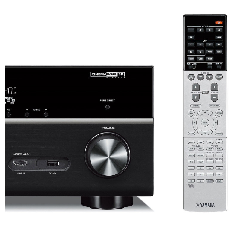 DSP. Este Yamaha viene equipado con una amplia variedad de programas  sonoros  que utilizan la experimentada tecnología de Yamaha. Estos programas sonoros permiten  fácilmente crear diferentes campos sonoros tanto para películas como para la música. Además existen dos modos de uso de los campos sonoros, básico y avanzado.