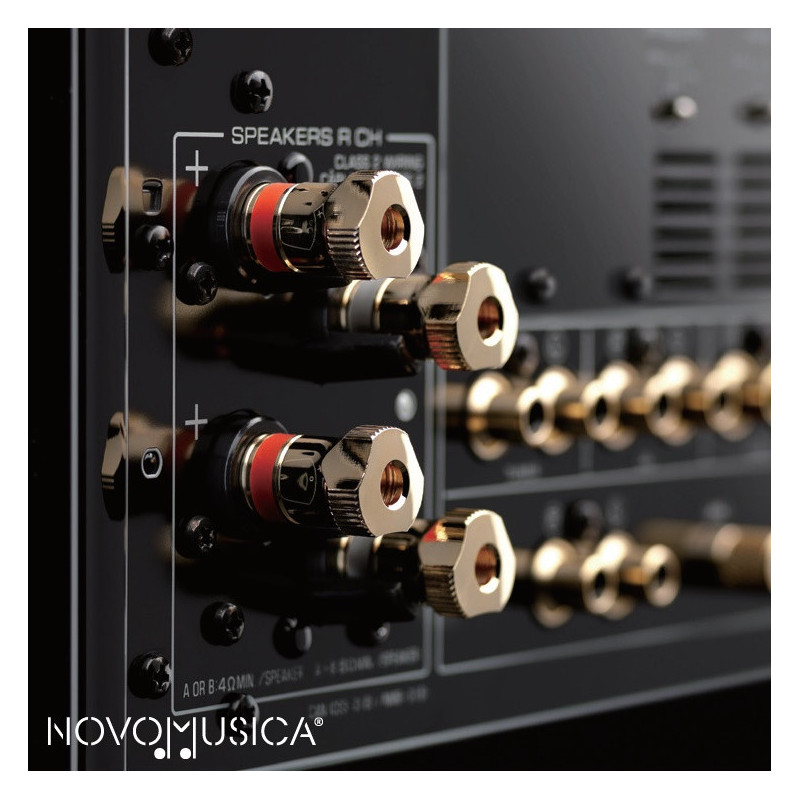 Cortados directamente de latón puro, los lujosos terminales de los altavoces permiten sin esfuerzo el apriete por la mano humana logrando una conexión altamente segura.