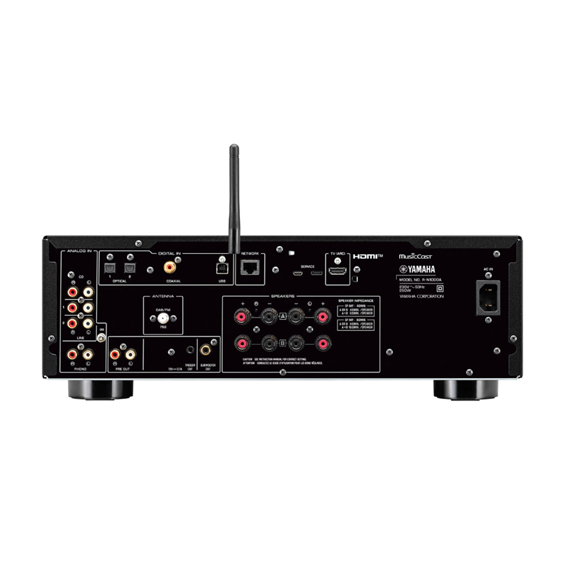 El R-N1000A está equipado con el sistema de red MusicCast original de Yamaha. Además, es compatible con una gran variedad de servicios de streaming como Amazon Music HD y Spotify, lo que te permite disfrutar plenamente de un sonido de calidad excepcional, exclusivo de las fuentes de sonido actuales de alta resolución y sin pérdidas, con total fidelidad. También puede usarlo para transmitir Apple Music con Airplay 2. Además, el sistema MusicCast te permite escuchar música fácilmente en cualquier lugar de tu casa vinculando varios dispositivos MusicCast con una sola aplicación en tu dispositivo inteligente.