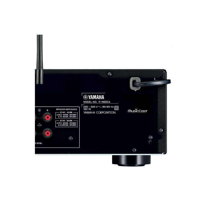 Yamaha R-N600A | 2x 80W (8 ohmios) | Entrada / salida de audio: Fono, CD, línea1, línea2, línea3 | Entrada digital: Óptica1, Óptica2, Coaxial1, Coaxial2 | Entrada USB: Sí (para dispositivo de almacenamiento USB) | Salida de subwoofer: Sí | DAC SABRE ES9010K2M | Formato de archivo MP3, WMA, MPEG-4 AAC, WAV, FLAC, AIFF, DSD; AIRPLAY | Sintonizador DAB / DAB+ | MusicCast