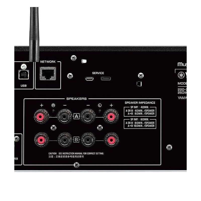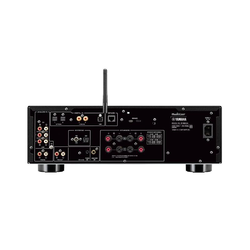 Yamaha R-N800A receptor de red | Tecnología YPAO | ESS SABRE ES9080Q Ultra DAC | MusicCast | Entrada / salida de audio: Fono, CD, línea1, línea2 / salida de previo, salida de subwoofer | Entrada digital: Óptico1, Óptico2, Coaxial1, Coaxial2 | Entrada USB: USB DAC (USB tipo B)