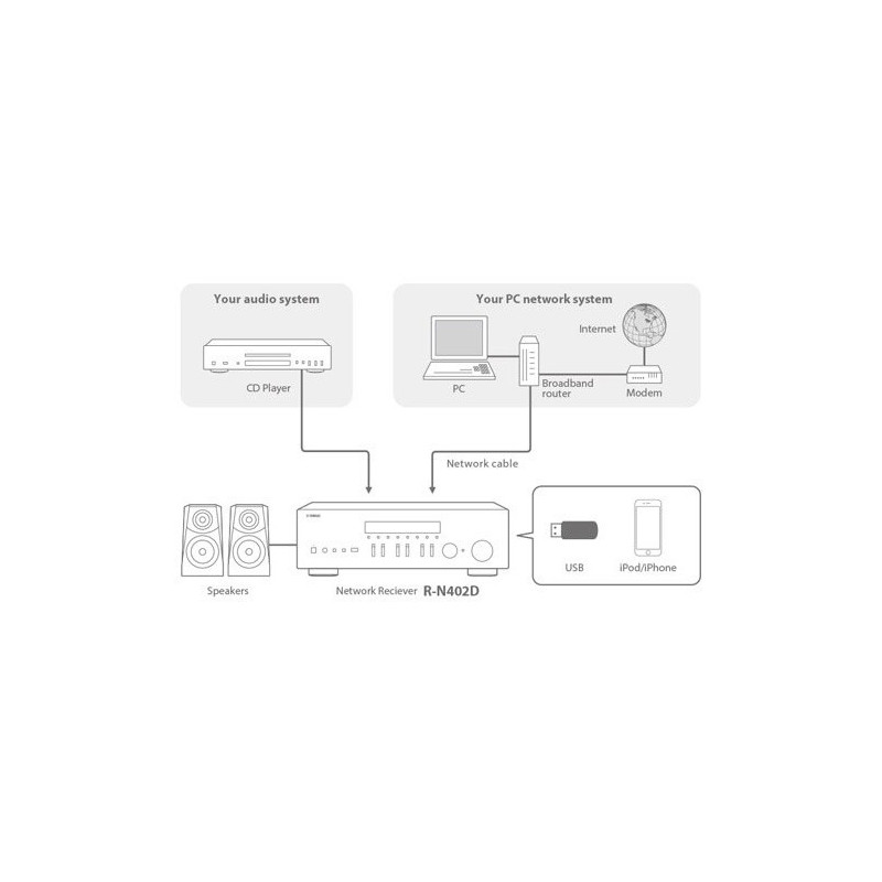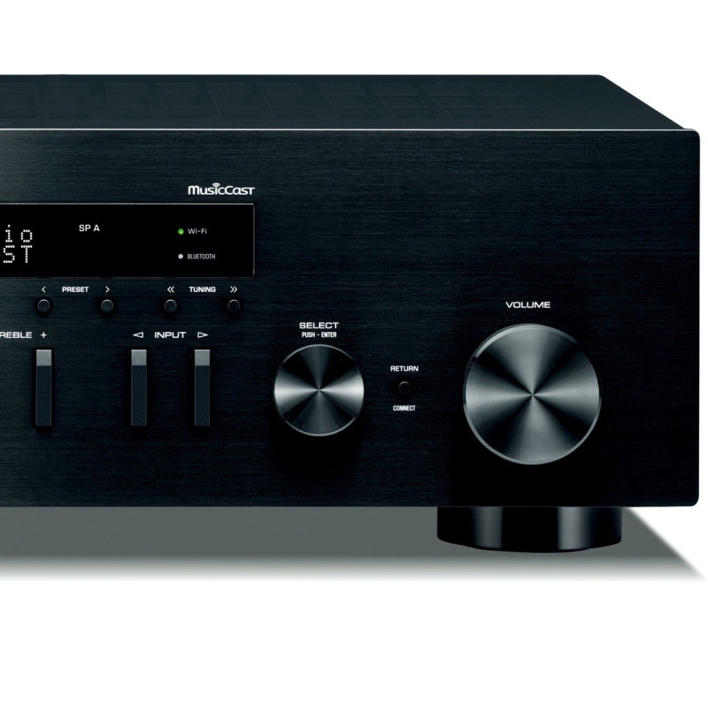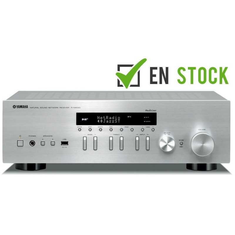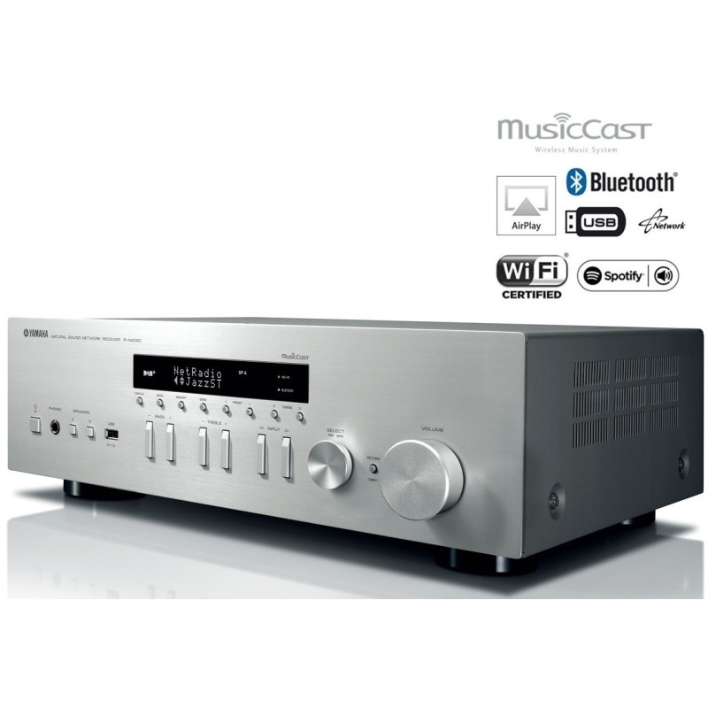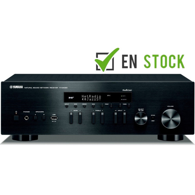Yamaha RN402 Amplificador con radio FM. Receptor estéreo en red con conexión WiFi, bluetooth y AIRPLAY. Compatible con MusicCasrt un revolucionario sistema que te permite conectar dispositivos compatibles Music Cast como Receptores AV, barras de sonido, sistemas estéreo y cualquier altavoz bluetooth usando el conexión internet de casa para escuchar cualquier fuente(TV, CD,USB,bluRay,etc…) en cualquier dispositivo todo ello controlado mediante una sencilla app. Permite enviar por bluetooth música a cualquier auricular o altavoz bluetooth de cualquier marca.