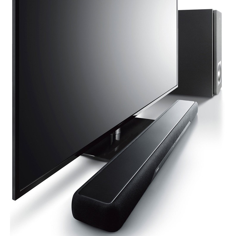 El YAS-207 también cuenta con un subwoofer delgado. Gracias a la conexión inalámbrica, se adapta de forma limpia y discreta a cualquier habitación, en cualquier lugar. Colócalo en su sitio, enciéndelo y disfruta de unos graves realmente dinámicos y profundos.